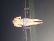 レイヤードTバックビキニで 真っ暗な海岸で