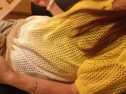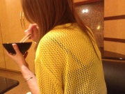 食べてる最中も脚と胸触りっぱなし(笑