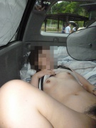 真っ昼間から車内で半裸というよりもほぼ全裸な奥さん(*^.^*)