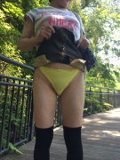 綺麗なお尻にムラムラしますね… 平日だったら 良かったですね! 黄色のパンティーがそそりますね…露出して 奥さん濡れてきませんか?