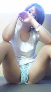 M字開脚!ショーパンの間から見えちゃいそう!Tバックなのかな?それともノーパン?