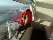 チラリとみえる赤パンティーがまた素敵です(^_^)