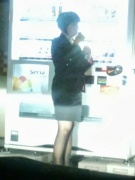 少し前になりますが、皆さんと同じくスーツ姿が好きでたまらないかたから彼女を自販機前に立たせて、その姿を見ながら車の中でオナさせて欲しいとお願いされ実行したときの画像です