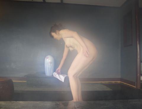 着脱衣姿も良いですが、湯煙の中の奥様も素敵ですね。