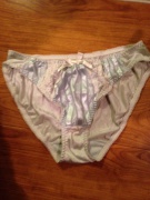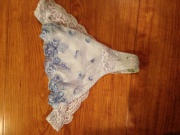 紐パンでお尻側にレース。薄いブルー(?)がポイントです。
