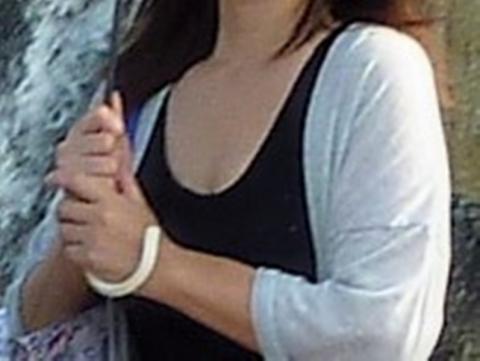 いつも妻は外でも胸空きのタックトップをきるので