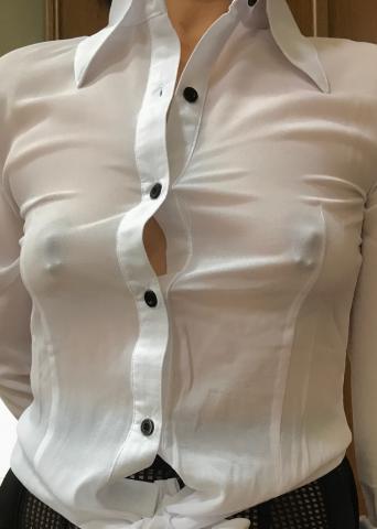 ノーブラで透けブラウス。