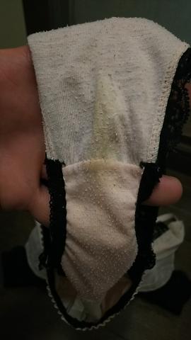今朝の奥様のパンティはオシッコやらマン汁かたっぷり着いてますね手に取り匂い嗅いでチンチンをシコシコしたいです