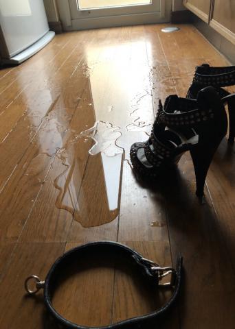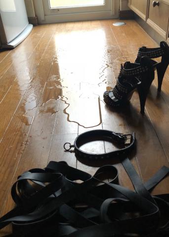 嫁の潮噴き跡、フローリングの上に垂れ流しです。