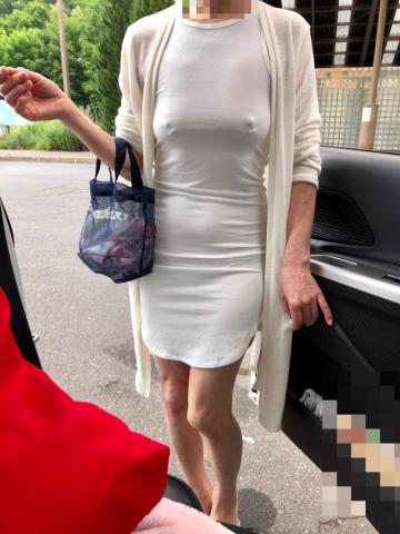 ノーブラに薄手のワンピースを着せて観光です。乳首が浮き上がってます。まずは道の駅で洗顔にいかせました。