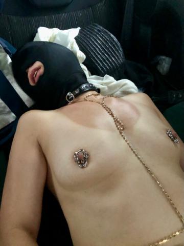 ピアスの重みかゴム棒の快感か