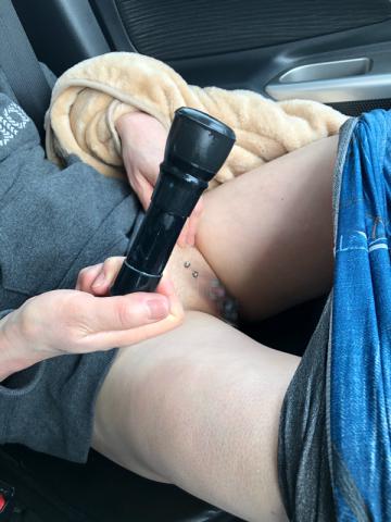 露出の後、助手席でゴム棒責め。