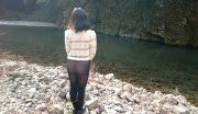 川で。