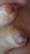 泡でヌルヌルになったオッパイをモミモミし