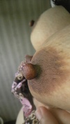 写メ、ゴムを外す直前の乳首です(*´д`*)ハァハァ♪