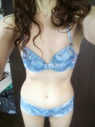 可愛いブラにショーツだね。とっても似合います。腰のくびれがたまりません。後ろからくびれに手を回し、そこから上へ下へ手を這わせたいです