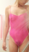 ピンクの透けレオタードです。