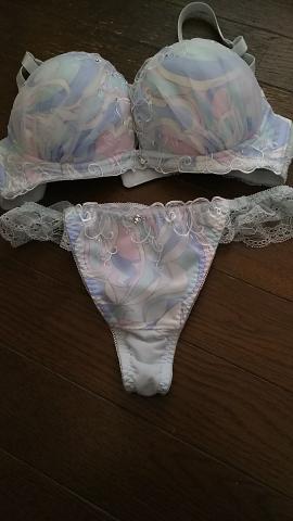 可愛いカラーのパンティブラですね。やはり、盗んでイタズラしたい!