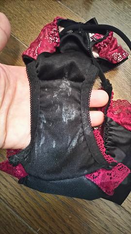 黒のクロッチは染みが目立ち最高にエロいです。思い切り鼻を押し付けて匂いを嗅ぎたいです。