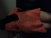 赤いすけすけのワンピから黒のパンツが刺激的ですね