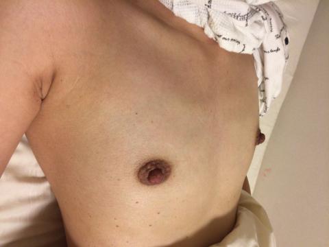 エッチ後に隣で熟睡した貧乳奥さんのちくび